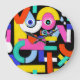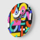 Colorful abstract pattern with word love inside, eyes, tears, color blocks. Pattern illustration with bright color-blocking shapes. Trendy colorful pop art geometric pattern with bold shapes on black.