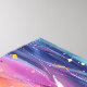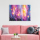 The image showcases a vivid array of abstract flowers set against a background of swirling colors. Bright yellows and purples mix with hints of blue, creating a sense of dynamic motion and energy.