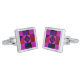 Abstract Magenta Geometric Pattern Monogram Cufflinks