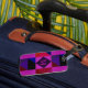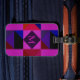 Geometric triangles pattern in magenta, pinks and purples with central monogram.
