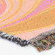 A quality printed throw has its advantages. This is a much finer weave throw than its loopier cousins, and though lighter, it is worth the investment for custom room accessorizing. The back is much prettier than the typical brown, and the fringe on the long sides very vivid, the selvage nicely done. Before photographing, I washed the throw in cold water, delicate, with a thicker woven throw the same size. On tumble dry low, this throw was dry in half the time as the other. This is a very practical quality if you use throws for furniture covers or to wrap up in frequently. The sleekness of the fabric makes it a great layer for accenting or protecting without the feeling of sitting on too much stuff. Perfect for napping or when you feel a light chill coming on. The color printing is beautiful and on this fabric, matched the design and color of my Photoshop image. This is an advantage for blending room fabrics and colors. The fringe on the short sides prints the colors from the design image and therefore varies from the side fringe. I streaked a white fractal line through the plaid pattern to give the illusion of weaving. This printed as crisp as an illusory thread, and put some white in the short side fringe, showing another advantage of print vs loomed- for artistic purposes, line lines, detail, and color integrity can be planned and preserved. My loomed throws have color limitations and more of a needlepoint texture. Print throws reproduce an exact image. The throw felt a little stiff straight out of the package, but this went away in the first delicate wash. Of course I searched the wash water for ink or bleeding and there was none.