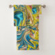 abstract marble swirls yellow teal turquoise blue bath towel set