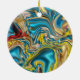 abstract marble swirls yellow teal turquoise blue ceramic ornament