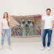 A quality printed throw has its advantages. This is a much finer weave throw than its loopier cousins, and though lighter, it is worth the investment for custom room accessorizing. The back is much prettier than the typical brown, and the fringe on the long sides very vivid, the selvage nicely done. Before photographing, I washed the throw in cold water, delicate, with a thicker woven throw the same size. On tumble dry low, this throw was dry in half the time as the other. This is a very practical quality if you use throws for furniture covers or to wrap up in frequently. The sleekness of the fabric makes it a great layer for accenting or protecting without the feeling of sitting on too much stuff. Perfect for napping or when you feel a light chill coming on. The color printing is beautiful and on this fabric, matched the design and color of my Photoshop image. This is an advantage for blending room fabrics and colors. The fringe on the short sides prints the colors from the design image and therefore varies from the side fringe. I streaked a white fractal line through the plaid pattern to give the illusion of weaving. This printed as crisp as an illusory thread, and put some white in the short side fringe, showing another advantage of print vs loomed- for artistic purposes, line lines, detail, and color integrity can be planned and preserved. My loomed throws have color limitations and more of a needlepoint texture. Print throws reproduce an exact image. The throw felt a little stiff straight out of the package, but this went away in the first delicate wash. Of course I searched the wash water for ink or bleeding and there was none.