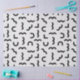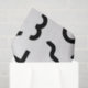 A modern and playful seamless pattern featuring an array of abstract geometric shapes in classic black on a light grey background. This design evokes a minimalist yet dynamic aesthetic with its assortment of wavy lines, curved arcs, and sharp angles, reminiscent of the Memphis Group design movement. It offers a contemporary and versatile look for a variety of applications.