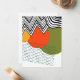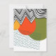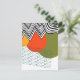 This flat, blank notecard has a mid-century modern design of curvy and zigzag lines in black, circles in yellow, orange, and green, and a rectangle made from dashed teal lines. Add your own personal message. If you want the same design with different colors, message me.