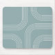 Abstract Mid Century style line art illustration with arches decoration on light blue background.