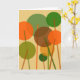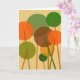 An abstract geometric modern art floral design of round flowers on stems in orange, green and brown colors.
