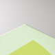 An abstract modern art minimalist design of geometrical shapes in dark green and olive green colors on a sage green background.