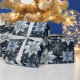 Abstract Modern Blue Jeweled Poinsettias - in shades of blue on a dark blue background with champagne gold accents - perfect for Christmas or all occasion gift wrap