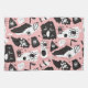 This design features an abstract pattern constructed of hand drawn eyes and lips on a pink background.