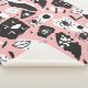 This design features an abstract pattern constructed of hand drawn eyes and lips on a pink background.