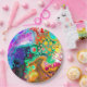 Purple, blue, red, yellow, teal, orange colorful digital pour painting fluid art.