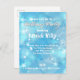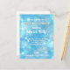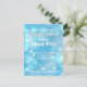 Modern abstract personalized birthday party invitation postcard design featuring shiny stars and sparkles on an abstract background in shades of blue.
