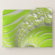 This beautiful product features a modern, abstract fractal art in lime green and white.