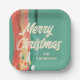 Abstract Modern Merry Christmas Personalized Name Paper Plates