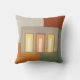 This minimalist window illustration throw pillow features a stylized depiction of three glowing windows, rendered with clean black outlines and soft interior lighting effects using muted terracotta, sage green, and warm grey.