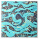 Abstract Modern Teal Blue Wavy Dots & Spots Ceramic Tile