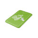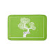 Abstract modern white circle tree and name lime gree bath mat. The focus of this design is a lovely abstract tree made of circles instead of leaves. It also includes a frame with personalized name.