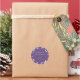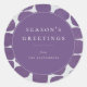 Abstract modish shapes, personalized holiday sticker. Festive shades of purple and faux gold shapes with template text lines for your holiday greeting and name.