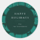 Abstract modish shapes, personalized holiday sticker. Festive shades of green and faux gold specs with template text lines for your holiday greeting and name.