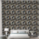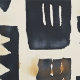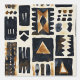 Hand-painted African mud cloth design featuring bold geometric shapes in earthy tones of black, brown, and cream.