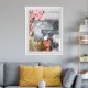 This mixed-media collage combines nature and branches imagery with colorful blurred details, featuring fragments of branches, spring blossoms, leaves, beach scene and grass, with touches of yellow ochra, bright yellow, gray, green, pink. A great addition to nature-inspired interiors with a pop of color with custom text and personalize with name or any desired text