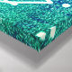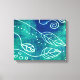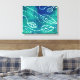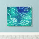 An original design abstract nature wall art print on wrapped canvas print in shades of blue, Reproduction of an original block print abstract leaf design with text be inspired for contemporary decor in home or office. Original art copyright Ann Powell all rights reserved.