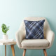 Abstract Navy Blue Plaid Checkered Pattern Throw Pillow