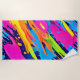 Abstract Neon Brushstrokes Splash Art Beach Towel
