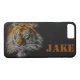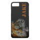 Tiger face with image in gold, black and white in neon artwork on stylish iPhone case. Name color and style can be customized.