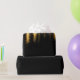 Photo of sparkly glistening night lights sea reflection in black and gold shiny colors.