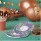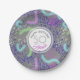 50th birthday personalized paper plate. Beautiful and original noodles abstract pattern with a white round tag for texts to customize. Design on cocktail paper plate. Matching birthday paper napkin.