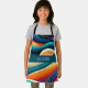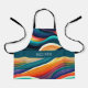 Great color and even though I ordered the kid size, it covers well enough to use during the holidays. I am not a big woman and prefer a shorter apron. I stand 5"6" and the length of the garment goes to mid-thigh. The tie straps fit well at my waist and even though there is no neck strap adjustment, the opening is plenty big enough. I am happy with the size and fit. I am sharing my apron with my 10 year old grandson, too! The color is vibrant and looks good, as shown on the website. The stitching looks strong and reinforced. Photographed is front side and back side of the apron, reinforced straps and coloring. My phone camera may not be the best at showing the details.