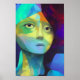 Portrait In Multicolored Tones. Abstract Picture Of A Beautiful Girl. Conceptual Closeup Of Canvas. Abstract of a Beautiful Girl Conceptual Art Print