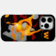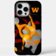 Swirls of golden color with a splash of red on black abstract artwork and just waiting for your initial to make this into a personalized and unique case.