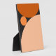 An abstract geometric modern art design of circles in orange and peach colors with a black background.