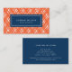 This stylish colorful business card features an orange line strokes pattern with a blue center on the front and a matching blue backside. It is ideal for interior designers, stylists, party planners, event planners, consultant, etc.