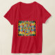 Vibrant geometric patterns fill the image, featuring circles, triangles, and swirls in a kaleidoscope of colors including blue, green, yellow, and red. The intricate design creates a sense of symmetry and balance.