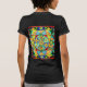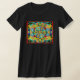 Vibrant geometric patterns fill the image, featuring circles, triangles, and swirls in a kaleidoscope of colors including blue, green, yellow, and red. The intricate design creates a sense of symmetry and balance.