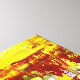 A colorful abstract representation of a cityscape with geometric shapes and bold colors. The composition features a mix of structured and chaotic elements