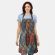 This apron has an art deco design of ovals with abstract designs within each in retro colors of pink and blue.