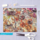 Abstract sunflower painting in autumn colors on stunning gifts and decor.