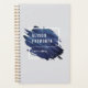 Chic personalized planner features an abstract paint stroke logo in rich navy blue on a pale gray background. Personalize with two lines of custom text.