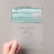 A paint strokes watercolor, in sparkling shades of sea glass green with splashes of soft blush pink, accents the pieces of this beautiful wedding suite. The transparent acrylic wedding invitation shown here also features elegant handwritten calligraphy and a template to easily add your own names and event details. Search ID886 to see other pieces and color choices for this set.