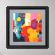 This is an abstract, textured painting featuring a vibrant arrangement of geometric shapes, vivid colors, and a bold, expressive style.