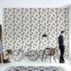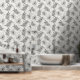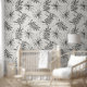This peel and stick wallpaper features an elegant abstract palm leaf pattern, perfect for adding a touch of nature to any space. The design showcases stylized black and dark-gray toned palm leaves set against an off-white background, creating a modern and organic feel. The leaves are arranged in various orientations, giving the wallpaper a dynamic and fluid visual effect that is both contemporary and playful.