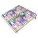 Natural Wood Cornhole Set, Yellow and Purple bags