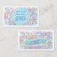 This abstract pastel floral customizable business card is very versatile and could be used for a variety of professions. Almost has a paisley or tie-dyed appearance. Pink, salmon, purple, turquoise, yellow and green colors. Customize it with your pertinent business info.