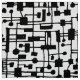 An abstract seamless pattern design made up of solid squares, rectangles and circles interconnected with lines. Created from an original hand drawing on paper using a roller pen, which has only been very minimally edited so as to retain all the inky spontaneity of the original.